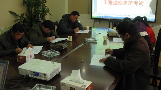 凭证集团公司《关于下发监理审核实验步伐的通知》的要求,,(【2011】44号),,集团工程治理部已组织对“京华世家”、“水丽坊”监理职员举行了岗前考试。。。。监理单位凭证集团文件要求,,在岗前组织项目监理职员学习了该项目的招投标文件、施工条约、设计图纸以及集团工程治理的有关划定。。。。关于考试效果缺乏格的职员予以一次补考,,若补考效果再缺乏格,,将不予任命。。。。