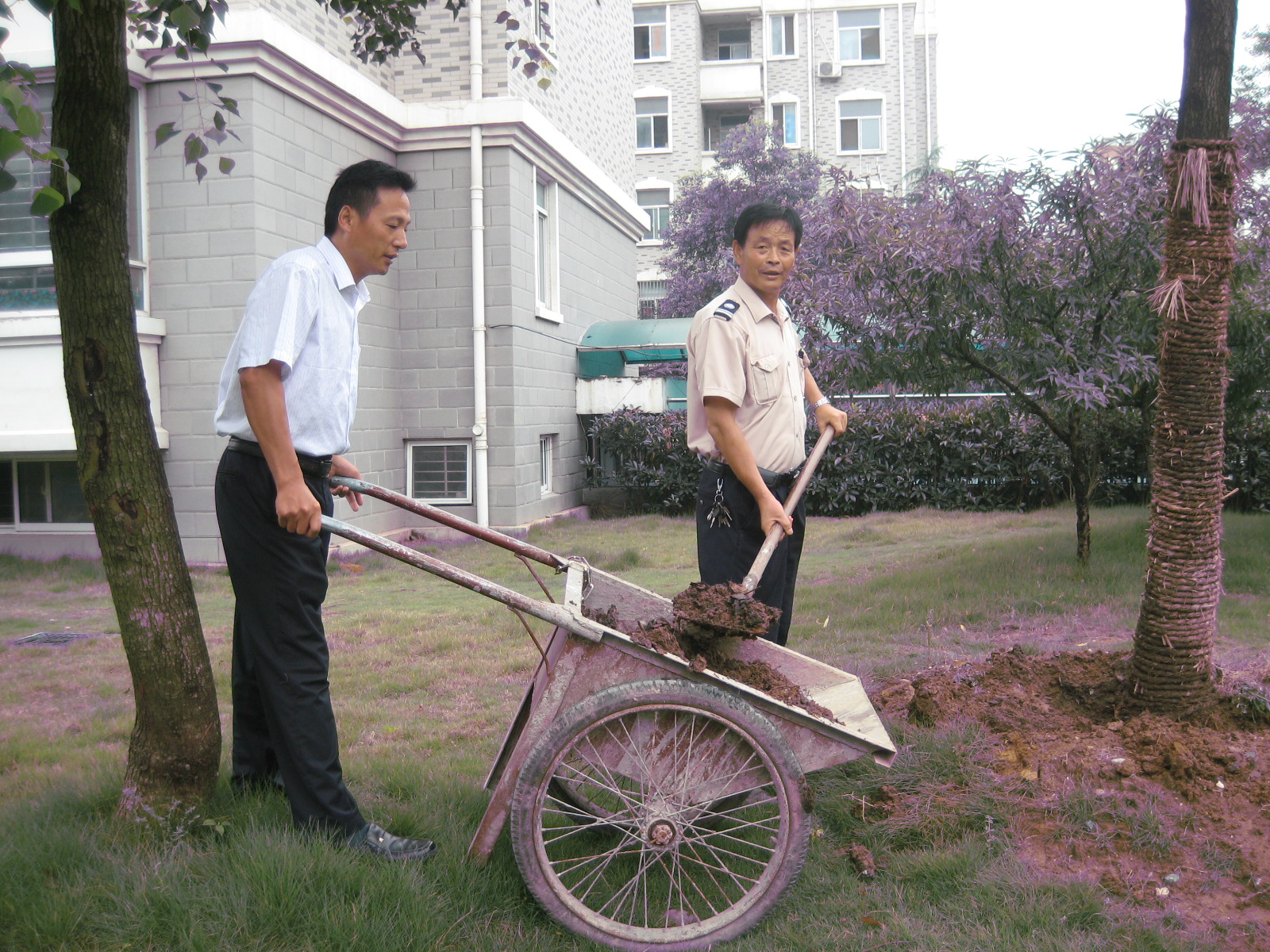 克日理由于一连降雨,,,,,为了能包管小区雨污水井的流通,,,,,同时也为了美化小区的绿化,,,,,建设小区的所有物业事情职员,,,,,不畏辛勤,,,,,清掏淤泥,,,,,并废物使用,,,,,将清掏出来的污泥看成肥料埋在了树根下,,,,,节能环保一石二鸟。。。。。
