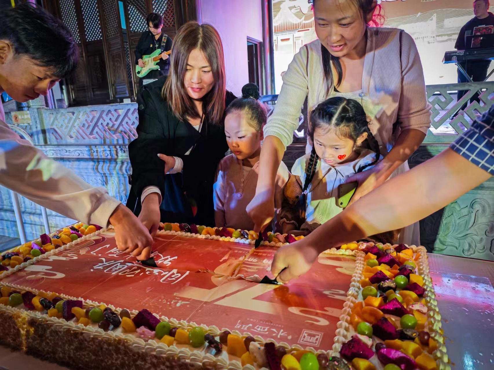 “我和祖国共庆生”、舞台民俗演出、游戏互动等环节精彩纷呈,,,,吸引大批庐江市民齐聚水西门街区,,,,共贺祖国华诞。。