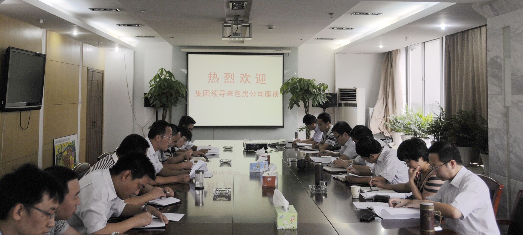 8月17日下昼, ,集团董事长与相关班子向导向导集团行政人事部、财务中心有关职员来到包房公司调研, ,并举行座谈, ,相识包房公司事情的开展情形。。
