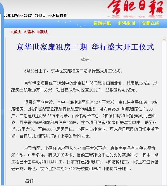 2012年,,,,城投公司代建的京华世家项目工地一再传来喜讯,,,,3月2日,,,,廉租房26#楼封顶;;;;;5月16日,,,,一期一组团4栋楼封顶;;;;;6月30日,,,,随着廉租房二期开工,,,,京华世家项目周全建设睁开。。。。